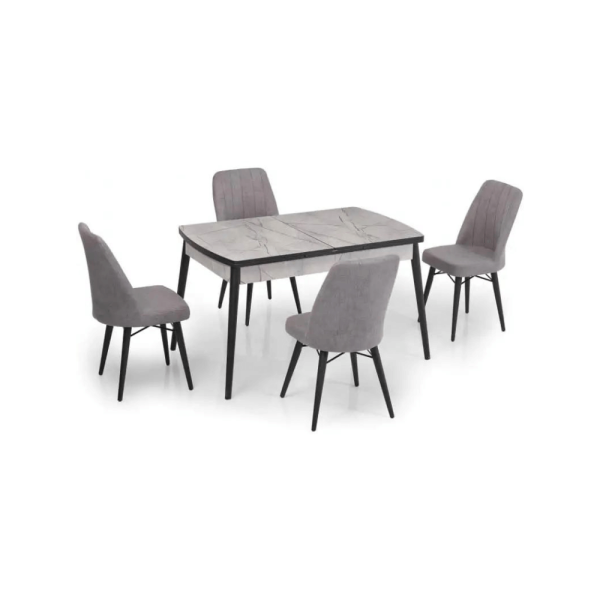 פינת אוכל ביתית מושלמת ענת כוללת שולחן אוכל גדול ומתרחב שעשוי MDF בגימור דמוי שיש או עץ מלא, וארבעה כיסאות אוכל מהודרים המרופדים בבד קטיפה רך ואוורירי. אפשר להוסיף לסט עוד שני כיסאות ולארח עד שישה סועדים. אורך שולחן האוכל הוא 130 סנטימטרים, והוא מתרחב בעוד 40 סנטימטרים באמצעות מנגנון ידני להרחבה קלה ופשוטה. אפשר לבחור בשולחן בגימור דמוי שיש בצבע שחור או אפור או בשולחן במראה טבעי בגימור דמוי אלון או אלון עם נגיעות של שחור. כיסאות האוכל מרופדים בבד קטיפה איכותי, רך ואוורירי שמונע הזעה ומתנקה בקלות. הכיסאות גבוהים וחזקים ונותנים תמיכה מצוינת לגוף בזמן האכילה. קנו פינת אוכל ענת עכשיו ותיהנו ממחיר מושלם, ממשלוח מהיר ומהרכבה מקצועית.