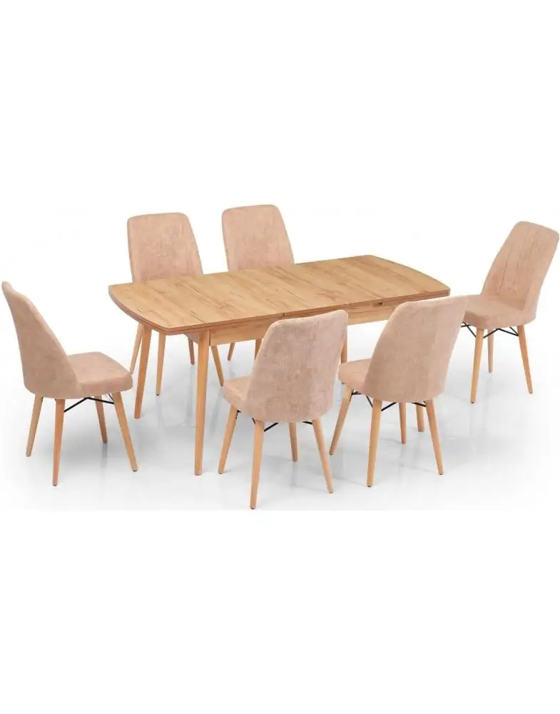 רוצים לאכול את הארוחות המשפחתיות בסטייל? חולמים על אירוח איכותי? אתם צריכים פינת אוכל ביתית מושלמת ענת. מערכת פינת האוכל כוללת שולחן אוכל גדול ומתרחב שעשוי MDF בגימור דמוי שיש או עץ מלא, וארבעה כיסאות אוכל מהודרים המרופדים בבד קטיפה רך ואוורירי. אפשר להוסיף לסט עוד שני כיסאות ולארח עד שישה סועדים.